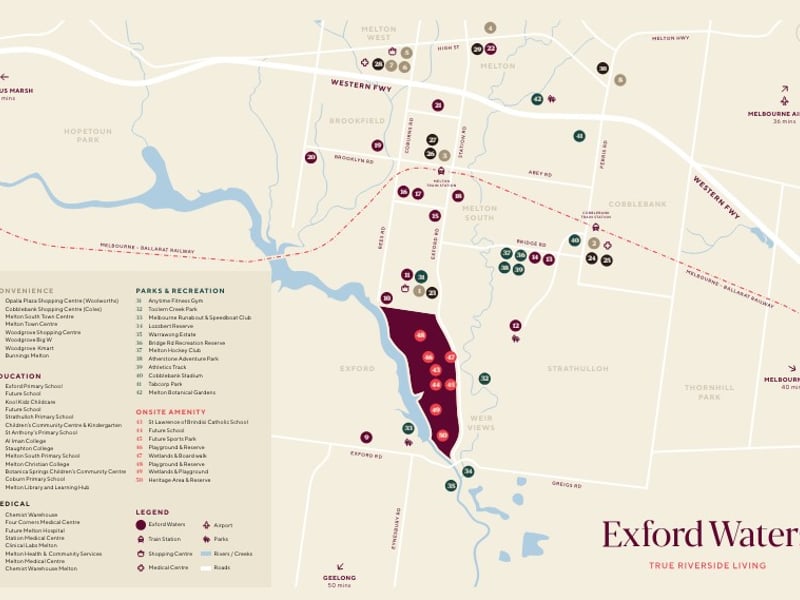 Exford Waters’ proximity of a 40-minute drive to both Melbourne’s CBD and Geelong, allowing you to take care of life, leisure and business.